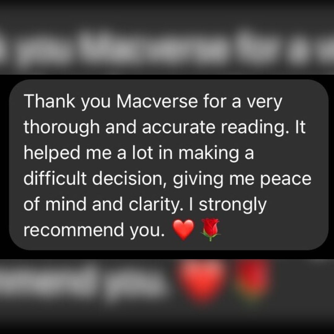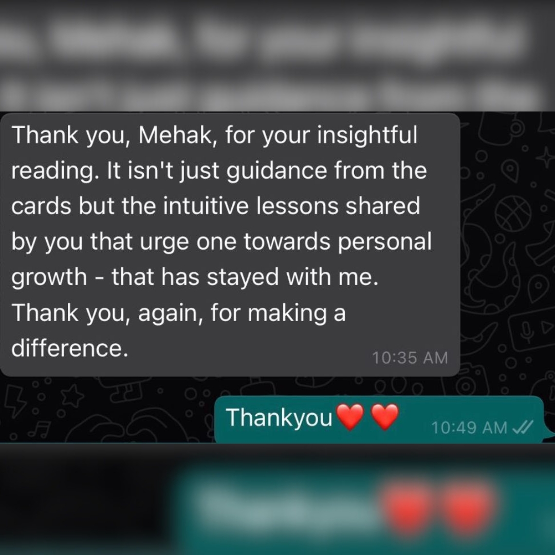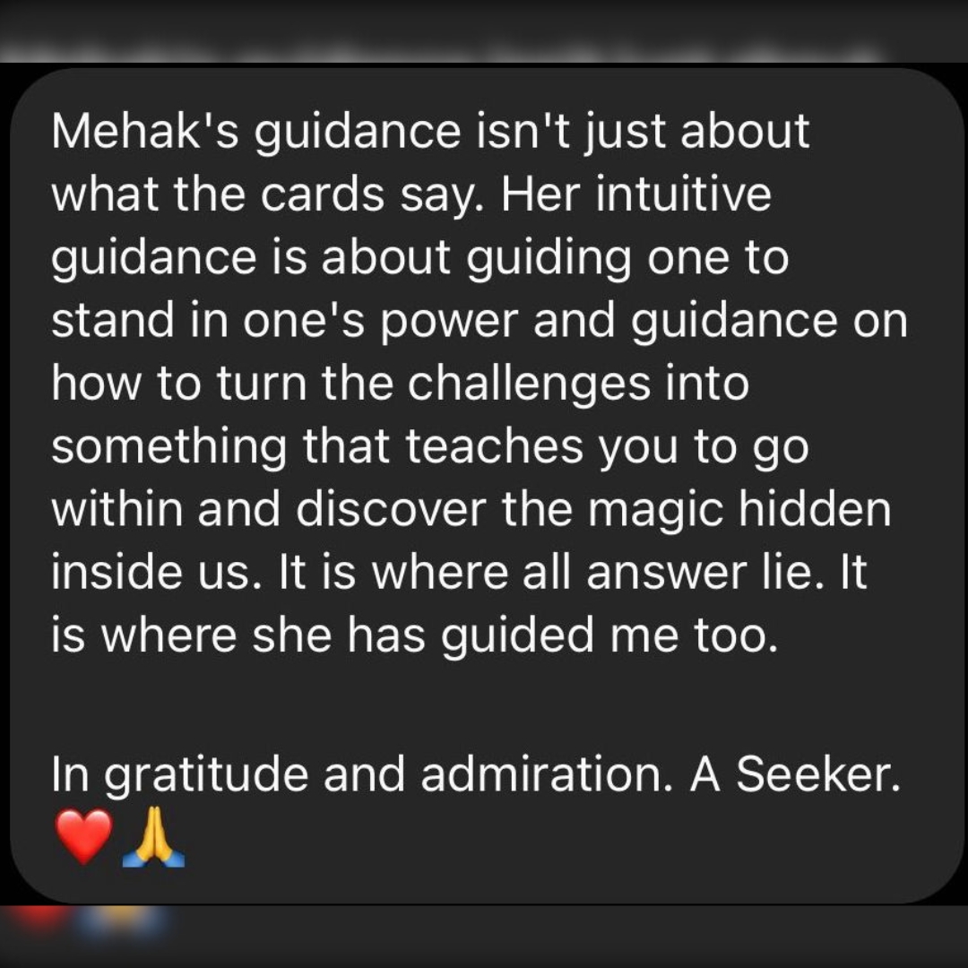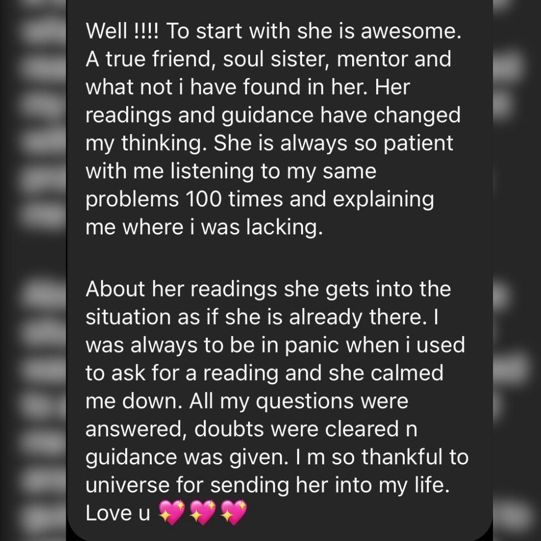 Tarot is not something I learned from a teacher; it was a gift. I believe this gift is passed down through my ancestors. During an ancestral meditation, I had a powerful awakening, and in that moment, tarot revealed itself to me. Since then, it has been an incredibly fluent and natural practice, one that serves as a self-guide. I’ve never felt disconnected from the cards, and the messages flow effortlessly. Most importantly, I’ve never experienced backlash in my tarot sessions—99.99% of the time, my clients resonate deeply with what is shared. This connection is something I cherish and continuously honor as I guide others through their journeys.